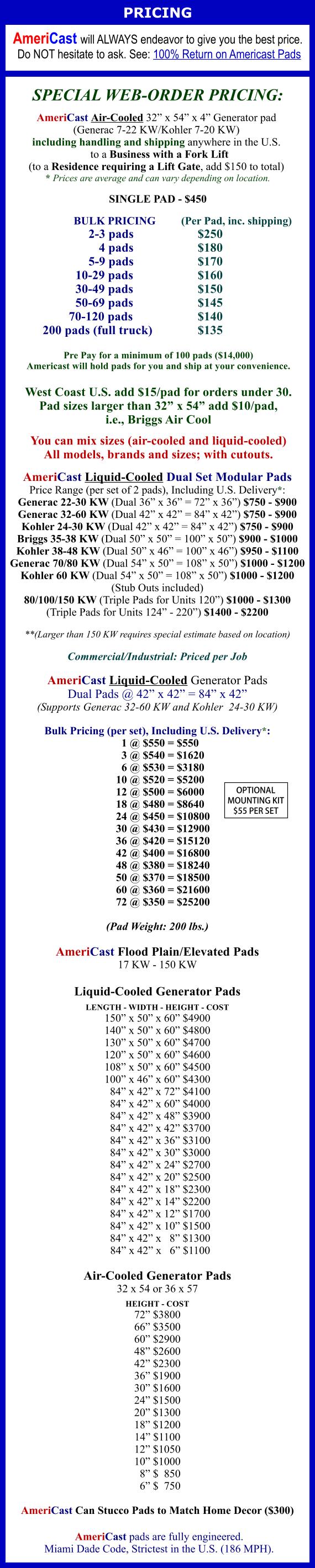 AmeriCast Generator Pads: Guaranteed for the Life of Your Generator!